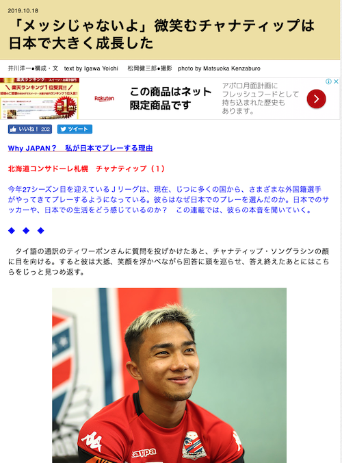 - コンサドーレの小さな巨人、チャナティップが思うタイと日本の相違点 – Web Sportiva