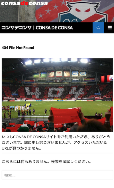 ちなみに、ここコンサデコンサの「404 File Not Found」のページもオリジナルで、人文字をおこなったスタンドの写真を加工したものとなっています。404の数字のところが加工です。