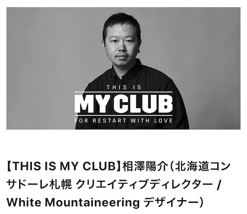 いよいよ本日再開のJ1。再開を記念して、北海道コンサドーレ札幌のクリエイティブディレクターで、ファッションブランド「White Mountaineering」のデザイナーである相澤陽介氏に今の思いを伺いました。#THISISMYCLUB #Jリーグが帰ってくる https://t.co/hVEKnimX98