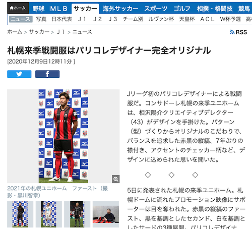 日刊スポーツのサイトに2021年シーズンのコンサドーレのユニフォームをデザインした相澤陽介クリエイティブディレクターのインタビュー記事が掲載されています。