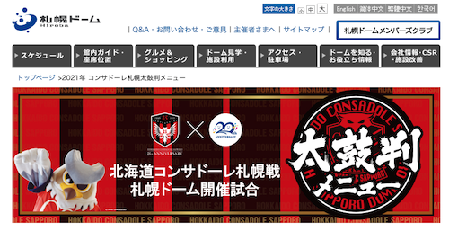 - 2021年 コンサドーレ太鼓判メニュー – 札幌ドーム公式