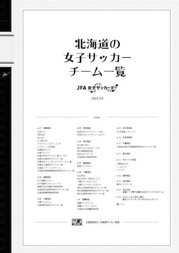 小話2023 北海道サッカー協会の冊子『北海道の女子チーム一覧』2023年版 2023年2月23日 コンサデコンサ管理人 北海道サッカー協会の冊子『北海道の女子サッカーチーム一覧』2023年版が2/20に公開されています。 【北海道の女子サッカーチーム一覧2023】 様式:PDF形式(無料) 関連外部サイト 北海道の女子チーム一覧 – 日本サッカー協会 コンサデコンサ内関連記事 23/02/23:北海道サッカー協会のパンフレット『北海道の女子サッカーガイド2023』 記事の共有: