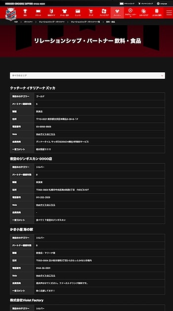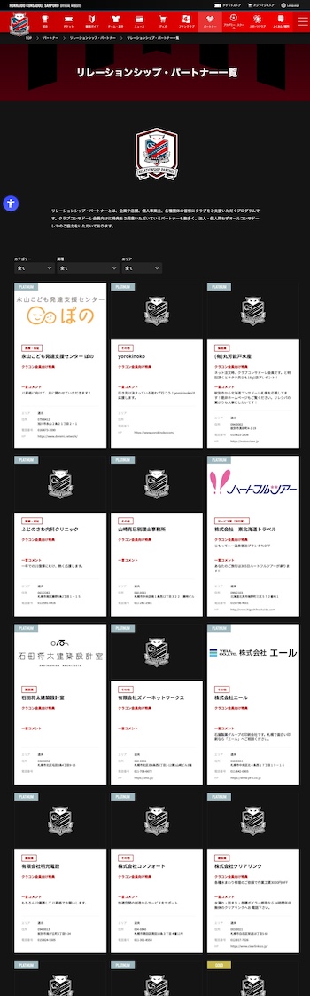 2025北海道コンサドーレ札幌のリレーションシップ・パートナーの一覧ページが公開されました。