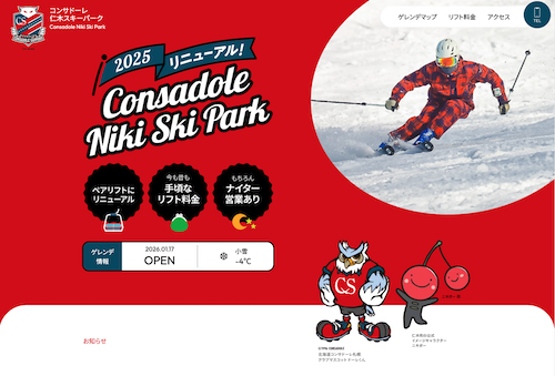 ニュース2025 コンサドーレ仁木スキーパークのサイトがオープン 2025年12月27日 コンサデコンサ管理人 3件のコメント 株式会社コンサドーレが、ネーミングライツを取得した仁木町民スキー場の新サイトがオープンしました。 コンサドーレ仁木スキーパーク 【コンサドーレ仁木スキーパーク】 施設名:仁木町民スキー場 愛称名(ネーミングライツ):コンサドーレ仁木スキーパーク 所在地:北海道余市郡仁木町大江1丁目87−4 SNS上の関連コメント コンサデコンサ内関連記事 25/11/08:株式会社コンサドーレが仁木町民スキー場のネーミングライツを取得 23/04/06:株式会社コンサドーレと仁木町が包括連携協定を締結 記事の共有: