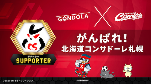 今シーズンから新たに北海道コンサドーレ札幌のクラブパートナーになった株式会社ゴンドラが、コンサドーレ応援画像を作れる「コンサ・ゴンドラ・メーカー」を公開しています。
