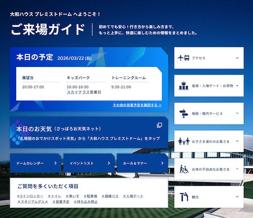 大和ハウスプレミストドームの公式サイトに、ドームへのアクセス情報を取りまとめたページ「ご来場ガイド」が登場しています。