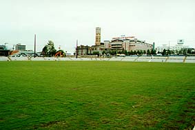 - 宮の沢サッカー場は、石屋製菓が造成・所有しているグラウンドのため(それを北海道コンサドーレ札幌に貸し出すという形になっている)、グラウンド管理(芝の維持など)は石屋製菓が分担しています。サッカー場を運営する上で問題になるのが維持費ですが、これを安くあげるために、いろいろな試みが行われています。例えば、練習場の周りに広告枠を設置し、その広告料で年間維持費をまかなおうというものなどです。「すいか隊」の設置もそのような、経費を安くあげるための一つの方法ですが、「すいか隊」の目指すものはそれだけではありません。