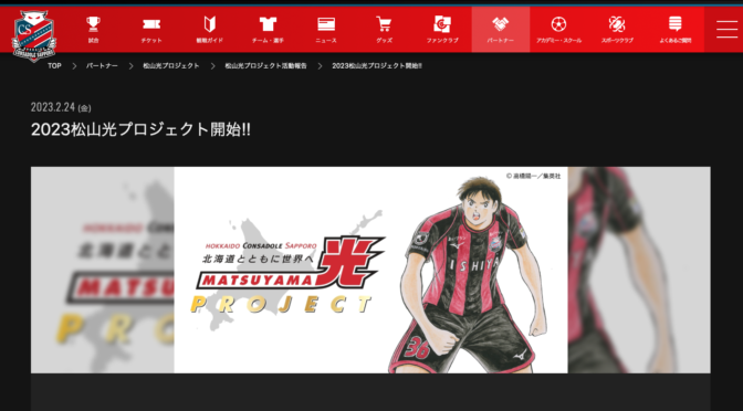 3/9より、2024年シーズンの北海道コンサドーレ札幌『松山光プロジェクト』がスタートしました。 『松山光プロジェクト』は、2014年シーズンから始まったプロジェクトで、今年で11周年。 このプロジェクトでは、高橋陽一氏 … 続きを読む 北海道コンサドーレ札幌『松山光プロジェクト』2024シーズンがスタート