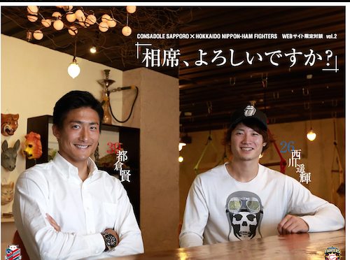 コンサドーレ札幌と北海道日本ハムファイターズによるコラボ企画「相席、よろしいですか?」の第2回が公開された。 「相席、よろしいですか?」は、今シーズン5月から始まったWebサイト限定企画。両チームから選手やスタッフが参加 … 続きを読む Webサイト限定対談企画「相席、よろしいですか?」第2回が公開