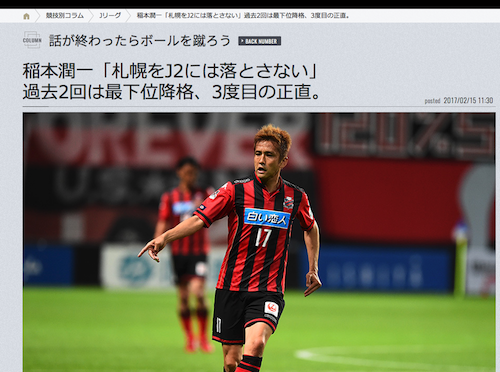 Number Webのサイトに稲本潤一選手を取り上げた記事が掲載されています。 佐藤俊さんの文。 稲本潤一「札幌をJ2には落とさない」 過去2回は最下位降格、3度目の正直。 – Number Web SNS上 … 続きを読む Number Webのサイトに稲本潤一選手の記事