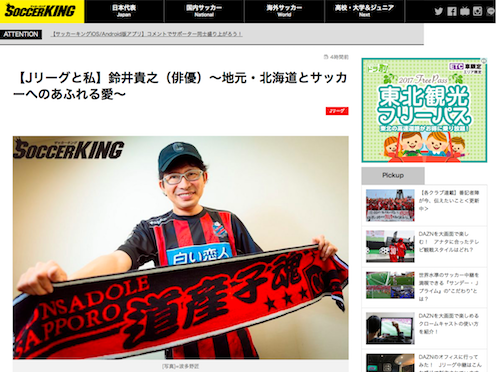 サッカーキングのサイトに鈴井貴之さんのインタビュー記事